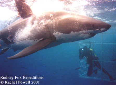 Rodney: In the beginning I guess there was in some way a sense of vengeance in those early expeditions. The first expedition I organized was with Alf Dean, the world record holder for the largest fish caught on rod and reel. Alf first showed me the Great White, and taught me the first things about where to find them and how to go about it. This was also when the first shark cage for great white sharks was used, and where Ron Taylor filmed the first ever underwater footage of this creature.