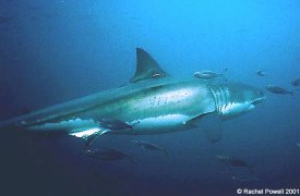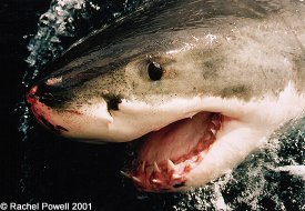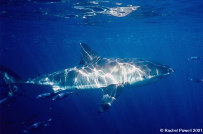 Rachel: Between March and September 2001, I was able to positively identify 66 individuals based on tag numbers and dorsal fin shape, with a confirmed 23% rate of shark re-sightings from previous years. Over the past few years, we have managed tag over 200 sharks. Thus far, my data shows that physical factors such as swell height, cloud cover, tidal height and visibility do have an affect on the abundance of Great White sharks at the Neptune Islands.