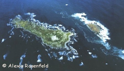 Dyer Island {left} and Gyser Rock {right} separated by the channel that has been called "Shark Alley".