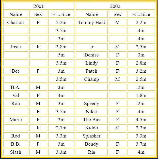 * In 2002 Sharks ranged from 1.8mtrs to a probable 4.5mtr.